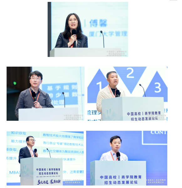 厦门大学管理学院副院长傅馨为论坛致开幕致辞。同济大学经济与管理学院副院长王洪伟发表了题为“对抗偏见:生成式AI时代商科教育的公平性突围”的主题演讲;对外经济贸易大学国际商学院副院长杨震宁发表了题为“财经院校MBA教育破局的战略选择”的主题演讲;北京师范大学经济与管理学院副院长胡聪慧发表了题为“数智时代MBA教育的挑战与创新”的主题演讲;中央财经大学商学院副院长朱飞发表了题为“数智化背景下MBA项目人才模型和培养模式”的主题演讲。