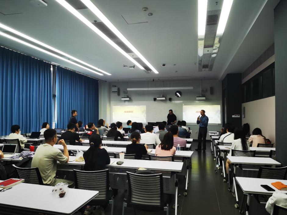 讲座开始后,柏龙老师以他在华为近20年的精彩履历开场,鼓励大家积极发言,针对同学们在各自企业操盘过程中所遇到的“战略无法落地执行”痛点问题,柏龙老师逐一给出解答。通过这一轮互动,柏龙老师引导大家得出了重要结论——战略是在有限资源下的取舍,是对公司未来产生重大影响的下一步行动;战略不是预测未来,而是决定我们今天做什么,才有未来;战略解码是通过可视化的方式,将企业的战略转化为全体员工可理解、可执行的行为的过程。柏老师的分享引起同学们的浓厚兴趣,课堂氛围热烈活跃,并吸引了周边其他方向的MBA同学加入探讨。