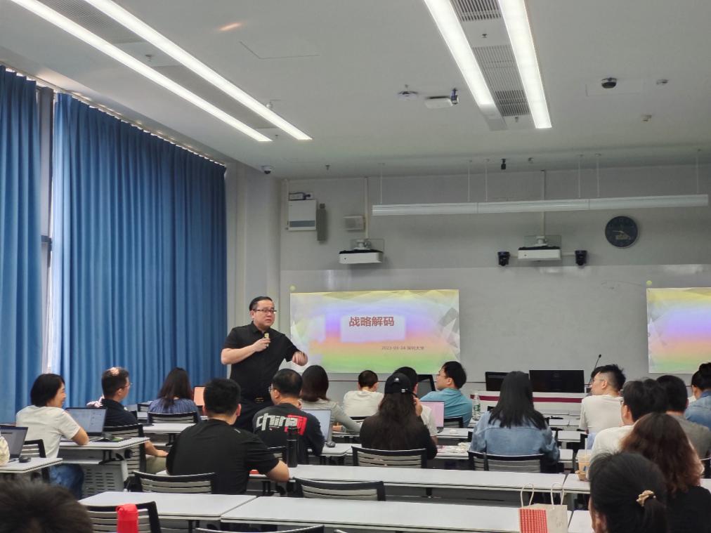2024年3月24日上午09:15-12:25,应深圳大学管理学院袁靖波副教授的邀请,知名战略管理专家柏龙老师以“战略解码”为题,为深圳大学管理学院MBA《战略管理》课堂开展主题讲座。