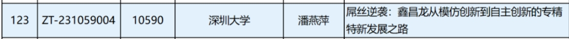 深圳大学MBA任课教师潘燕萍老师的案例:《屌丝逆袭:鑫昌龙从模仿创新到自主创新的专精特新发展之路》获得教育部学位与研究生教育发展中心《2023年度主题案例立项》“大国智造”主题案例立项。深圳大学MBA重视案例教学,利用本土优势,紧密结合企业案例进行MBA实战教学。