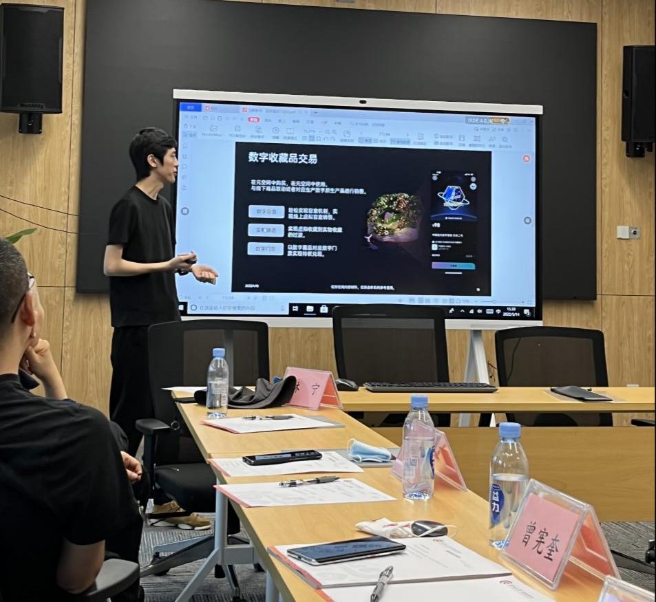 其次,彭俊熙校友则分享了作为连续创业者的创业历程,并着重介绍了于2017年成立的位形空间。位形空间作为VR技术方案提供商,依托于云渲染技术,是一家较早进入元宇宙赛道且取得一定成效的企业。会议嘉宾与老师对位形空间进行了热烈的讨论,从竞争者、进入门槛、行业环境、法律风险等方面展开了提问,并对于元宇宙、云渲染等产生了浓厚的兴趣。彭俊熙校友一一进行了耐心回答,让师生对这一新兴行业有了更深的了解。