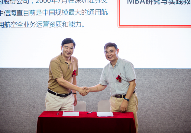 深圳大学管理学院副院长周志民教授主持了研究与实践基地揭牌仪式,强调了课堂学习与实践学习相结合的重要意义。管理学院院长刘军教授分别与中心海洋直升机股份有限公司和深圳市宝安区人力资源局签署协议书并进行揭牌。