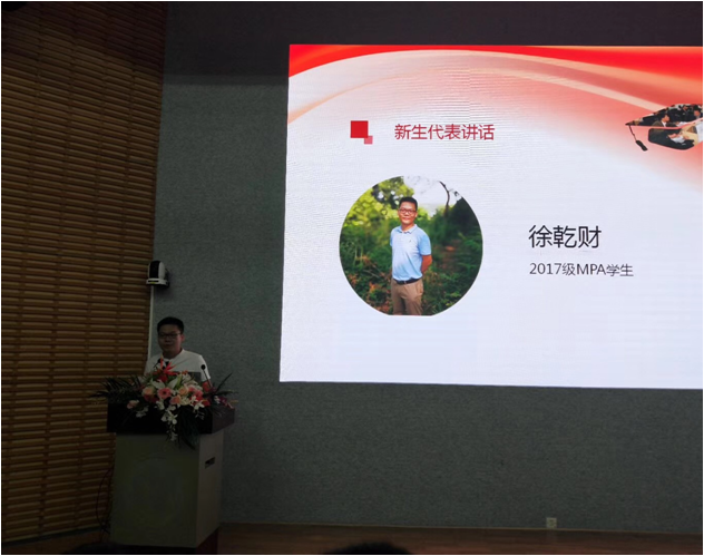在MBA、MPA师生代表讲话环节中,深圳大学管理学院潘燕萍博士分享了她对10000小时定律和马奇论管理的理解,鼓励新生们要勤奋求学、认真求知,实现人生价值。MBA新生代表侯艳丽分享了过去一年备考的种种感受和被录取后的自豪心情,并表示在今后的学习中将加倍努力,学有所成。MPA新生代表徐乾财表示在今后的学习生活中,将认真对待学业,平衡好工作和学习的关系,希望在学校中能收获友谊、收获学业。