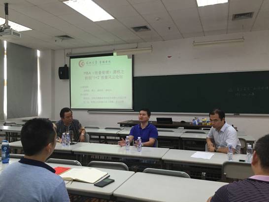 2015年11月21日,MBA 2014秋季班的《质量管理》课堂迎来了博群新材料技术有限公司胡军民总经理、联想资深质量经理苏权先生两位嘉宾,与任课教师潘燕春博士一起为大家带来一场质量风云论坛。