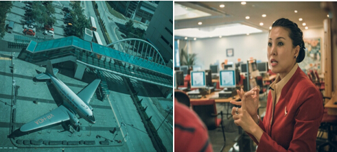 正因为台风缘故,接待我们的是取消了飞行任务的韩小姐。她带我们参观了国泰城的几个重要办公区域,如各舱室服务人员培训室、驾驶舱培训室、信息调度室、国泰飞机模型室等。她热情的讲解,让我们体会到国泰航空的科技创新与高效服务。而中午在国泰的餐厅里,我们则享受到国泰员工的优质午餐待遇。