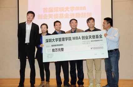 随后首届深圳大学MBA创业天使基金资助仪式开始。为了拓宽深圳大学MBA毕业生的职业发展路径,推动深圳大学MBA学生的科技创业活动、培育创新人才,深圳大学管理学院每年出资50万元用于资助在读MBA学员创业。经深圳大学管理学院创业基金管理委员会评审,此次15项申请项目中,最终有5项创业项目获得资助,每项项目获得创业基金10万元。在大会现场,管理学院院长刘军教授与五名受资助创业项目负责人签订了《深圳大学管理学院MBA创业天使基金资助协议》,创业天使基金倡导者、深圳大学人力资源部主任陈智民教授颁发“创业基金资助证书”,管理学院副院长马卫红副教授为五名“创业先锋”授牌。