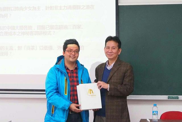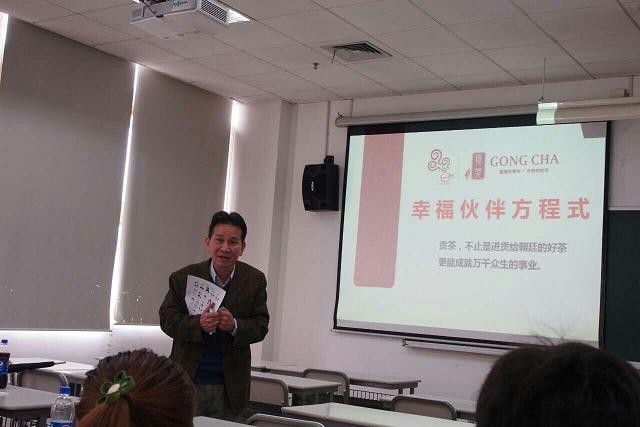 在经验分享环节,邀请了中国贡茶饮品集团董事长施瑞峰博士和大家分享贡茶的《品牌规划与营销策略》。施瑞峰博士从自己创业、求学的传奇经历讲起,形象、生动地分享了打造贡茶品牌的成功经验和模式就是“幸福伙伴方程式”。在课堂研讨环节,施瑞峰博士还和大家一起讨论了贡茶品牌目前的经营挑战和未来的发展方向,还率先为我们剧透了贡茶即将上线的口号、卡通形象、店面设计、微电影拍摄等“商业机密”。在结束了上午的分享和讨论后,同学们“转战”贡茶深圳大学店,实地体验贡茶的品牌管理和营销之道,品尝了贡茶的爆款饮品——奶盖茶,还活学活用了施总新设计的口号“奶盖贡茶,真不是盖的”与店员互动。