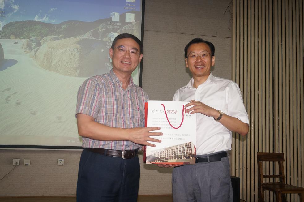 互动之后,刘军老师代表管理学院给李校长赠送了管理学院及MBA中心的小礼物,感谢李副校长对管理学院及MBA教育的大力支持!