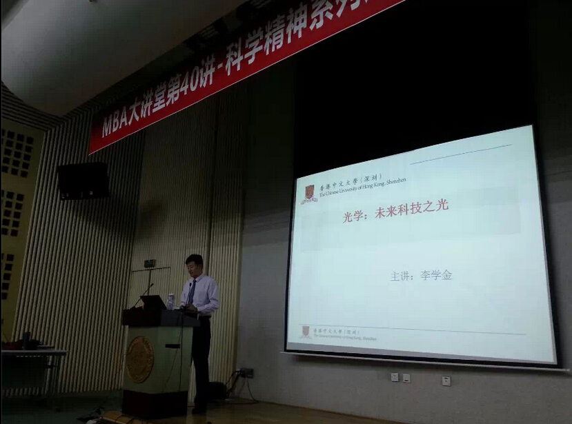 2014年10月25日晚上6点,深圳大学科技楼三号厅, MBA学子迎来了一位尊贵的客人,也聆听了一场特别的报告会。李学金教授,现任香港中文大学(深圳)协理副校长,兼任深圳市传感器技术重点实验室主任,深圳光纤传感网工程技术实验室主任。
