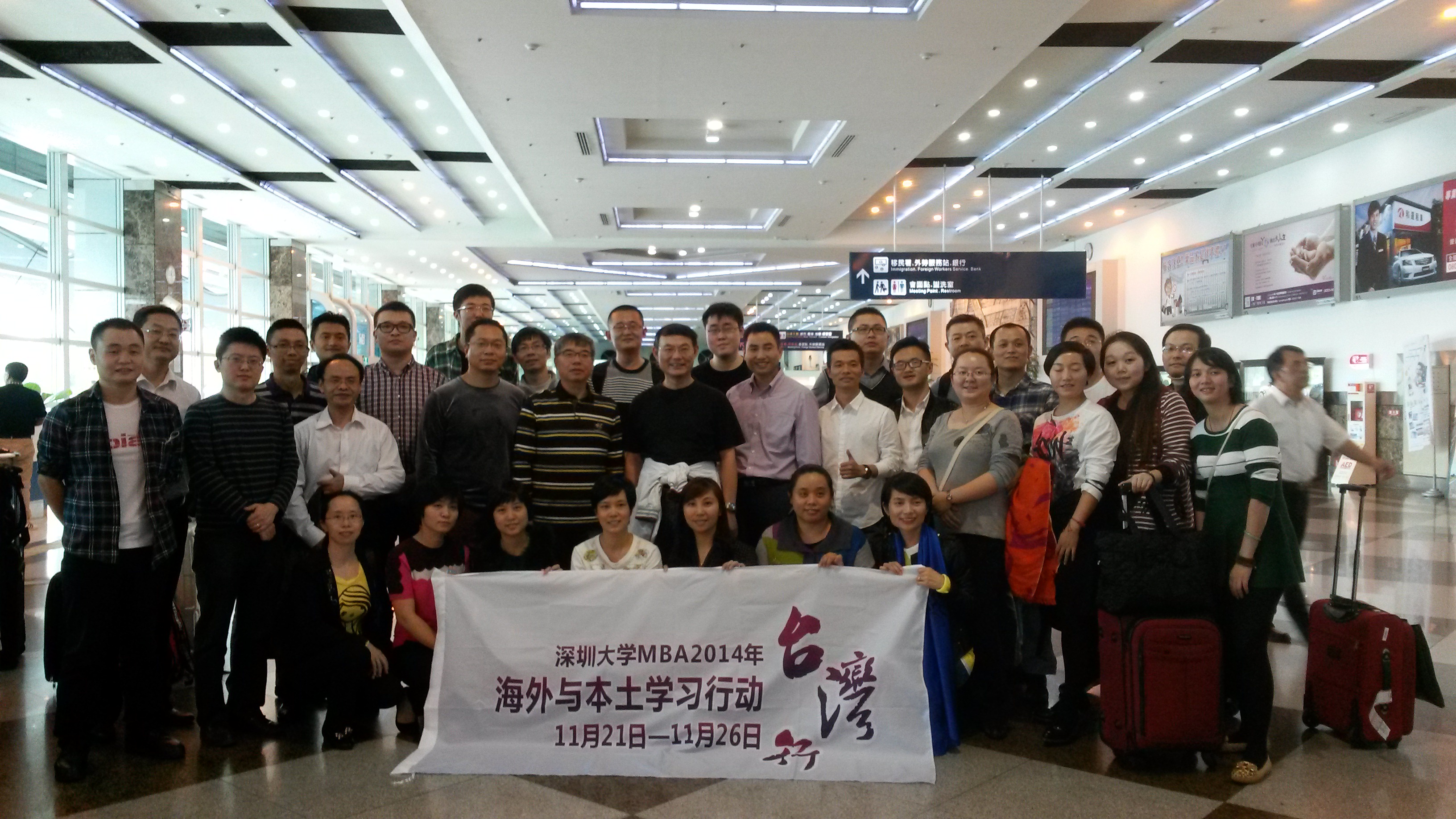 11月21日,当大多数人还酣于晨梦之时,一群深圳大学管理学院2010至2013级共29位MBA学子,在院长陈智民教授、副院长兼MBA教育中心主任刘军教授的率领下,在林旭东教授、党崇雷老师的组织下,全部已装点好行囊,于凌晨5:00整准时在深圳大学正门集合出发,前往香港机场搭乘前往高雄的航班,开启中心组织的为期6天5夜的海外与本土学习行动--台湾行!