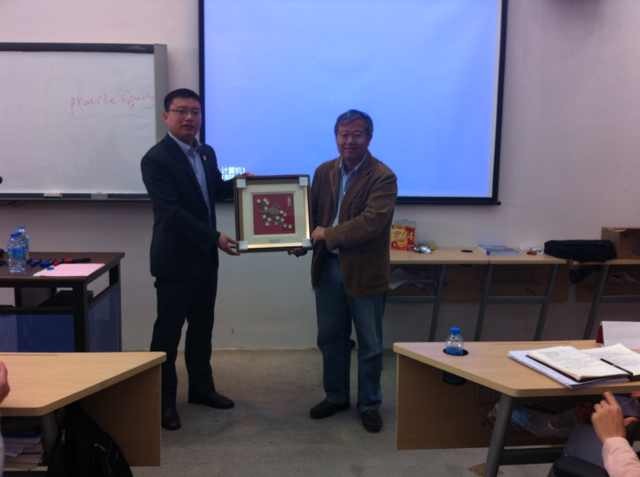 学生代表向嘉宾赠送礼品感谢韩总的精彩讲演