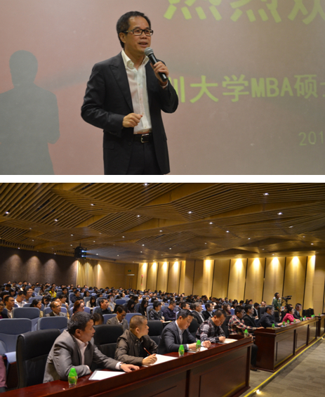 接着,陈教授代表深圳大学管理学院及MBA中心对华南城给予“移动课堂”的大力支持表示了衷心感谢,并赠送了象征合作共赢的MBA礼品。