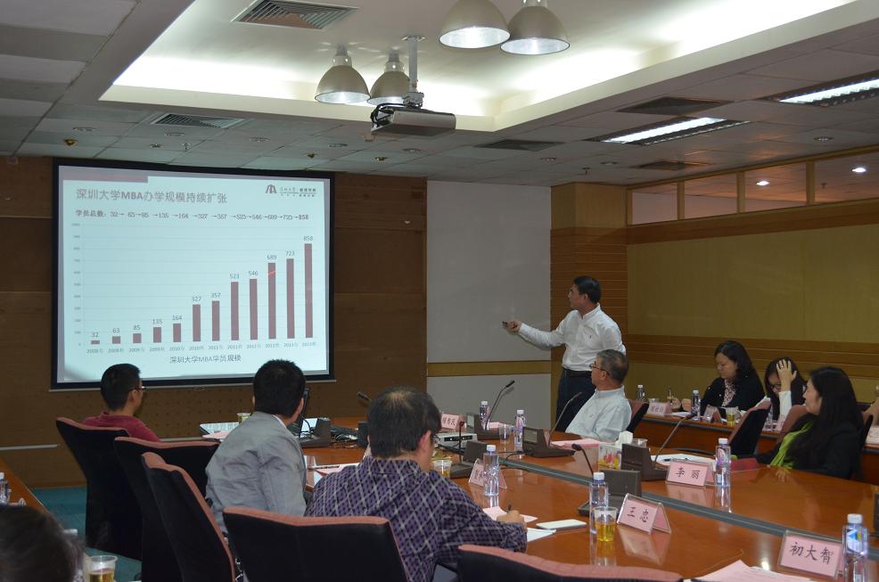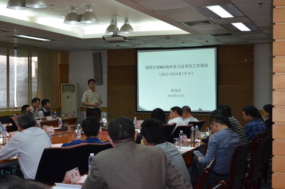 2013年11月16日(周六)下午,在图书馆二楼会议室,深圳大学MBA教学工作会议(12)成功举办。会议的主题是:MBA教育发展与教学创新。参会人员包括:院领导、清华大学深圳研究生院林功实教授、MBA任课教师、MBA教育中心管理人员,主持人是MBA教育中心教务管理支持部主任林旭东教授。