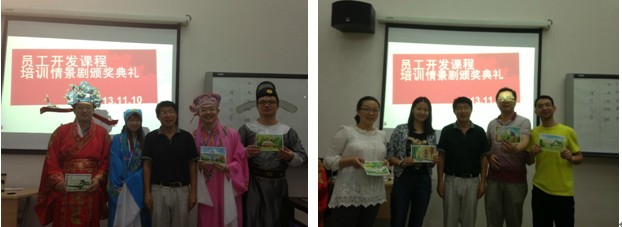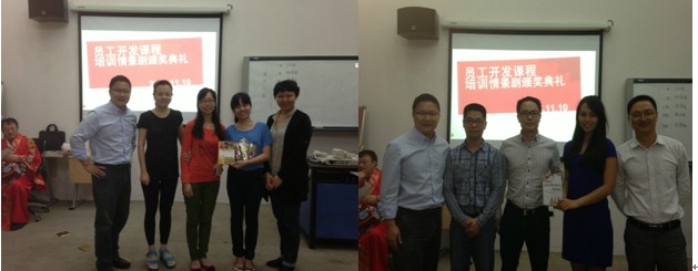 获得三等奖的分别是绿茶组“卓越驸马培训记”和朗文组“绩效面谈怎么谈”。