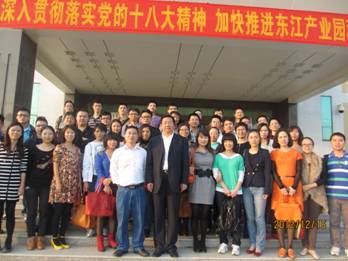 为拓宽同学们视野,使同学们多角度理解所学知识,由刘世雄副教授带队于2012年12月16日开展MBA课外参访活动,组织2011秋高端服务班的同学前往惠州仲恺高新区东江产业园调研学习。参访活动受到高新区及产业园区领导的热情接待,深圳大学管理学院特约教授、东江高新科技开发区管委会主任卢伟航博士全程陪同大家完成了参访活动。