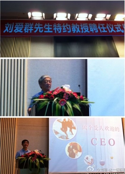 2012年6月10日,特发集团董事长刘爱群先生深圳大学特约教授聘任仪式暨MBA大讲堂在科技楼3号厅隆重举行。管理学院陈智民院长主持仪式,章必功校长亲临颁发聘书并致辞。随后刘总以“做一个受欢迎的CEO”为题作26讲深大MBA大讲堂。