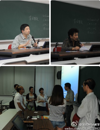2012年 10月27日(星期六),MBA11秋文化创意产业管理方向班《文化产业创意与策划》课程专职教师 陈敏 教授,外聘教师深圳市聚橙网络技术有公司CEO 耿军 讲座,分享了全国演艺市场的概况并且介绍了聚橙网的商业模式,给学员们带来了最一线的咨询。