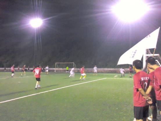 休息过后双方易边再战,深大更换了几名球员并变化阵容了,保持攻击力量不减;而已经体力透支的夏大,基本失去了组织进攻的能力,采取了防守反击的战术。10分钟后深大从右路发起进攻,并吸引了厦大的防守人员,9号及时将球分到中路,并过渡到无人防守的左路,下半场刚换上的23号(09秋-薛师兄)有足够的时间停球。。。瞄准。。。射门。。。因球势大力沉,直挂球门远角,对方门将只能眼睁睁看着球进。深大2:1领先!不过进球后的深大防守线稍有大意,因上压太多,在对方的一次防守反击中中后卫将对方前锋放倒在了禁区,被当值裁判掏了黄牌警告并给了对方一个点球,对方前锋一触而就,我方门将1号(11球-海亮)虽尽力扑救,但球还是进了。双方又次回到了同一起跑线。此后深大再也没有给对手机会,对厦大形成了围攻,频频通过左路左后卫2号(10秋-长星)以及中路5号(12秋-王福)处发起进攻。功夫不负有心人,在20分钟时,深大经过一连串的短传配合后,球被传入对方禁区,我方多名球员拍马赶到,接应队员在对方解围前射门得分,3:2,再次领先。而后明显体力不支的厦大没能再对深大球门构成任何危险,剩余时间成了深大练习射门和对方门将扑救的表演,王福的头球、老蔡的推射、10号(11秋-宇航)的吊射、小何的打门。。。但遗憾的时,在对方门将左扑右挡、近乎神勇的表现下,力保球门没再失,最终深大3:2力压夏大,全取3分。
