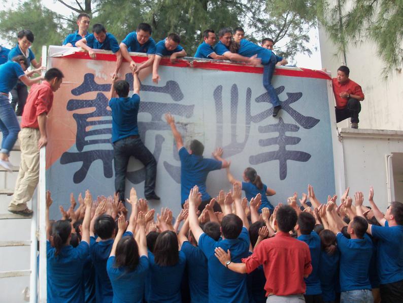 转眼间夜色将近,149人都疲惫到了极点,归心似箭的大队伍却碰到了高高的“感恩绩效墙”,爬还是不爬,荔园学子踌躇着。踩着人梯爬过去。一个刺耳的声音划过静静的夜空,在众人心口划上了一条长长的口子,血在悄悄的流,汗在默默的淌,厚重的呼吸声在大气中回荡着回荡着……当最后一个勇士攀过高墙,泪水不自觉的决堤,再也抑制不住,就让它尽情的挥洒吧,为我敬爱的战友们,为我无间的团队凝聚力……泪眼模糊中,有点恍惚:王尔德的玫瑰在夜莺婉转的歌声中激情绽放在夜空中!泉城乎?鹏城也!
