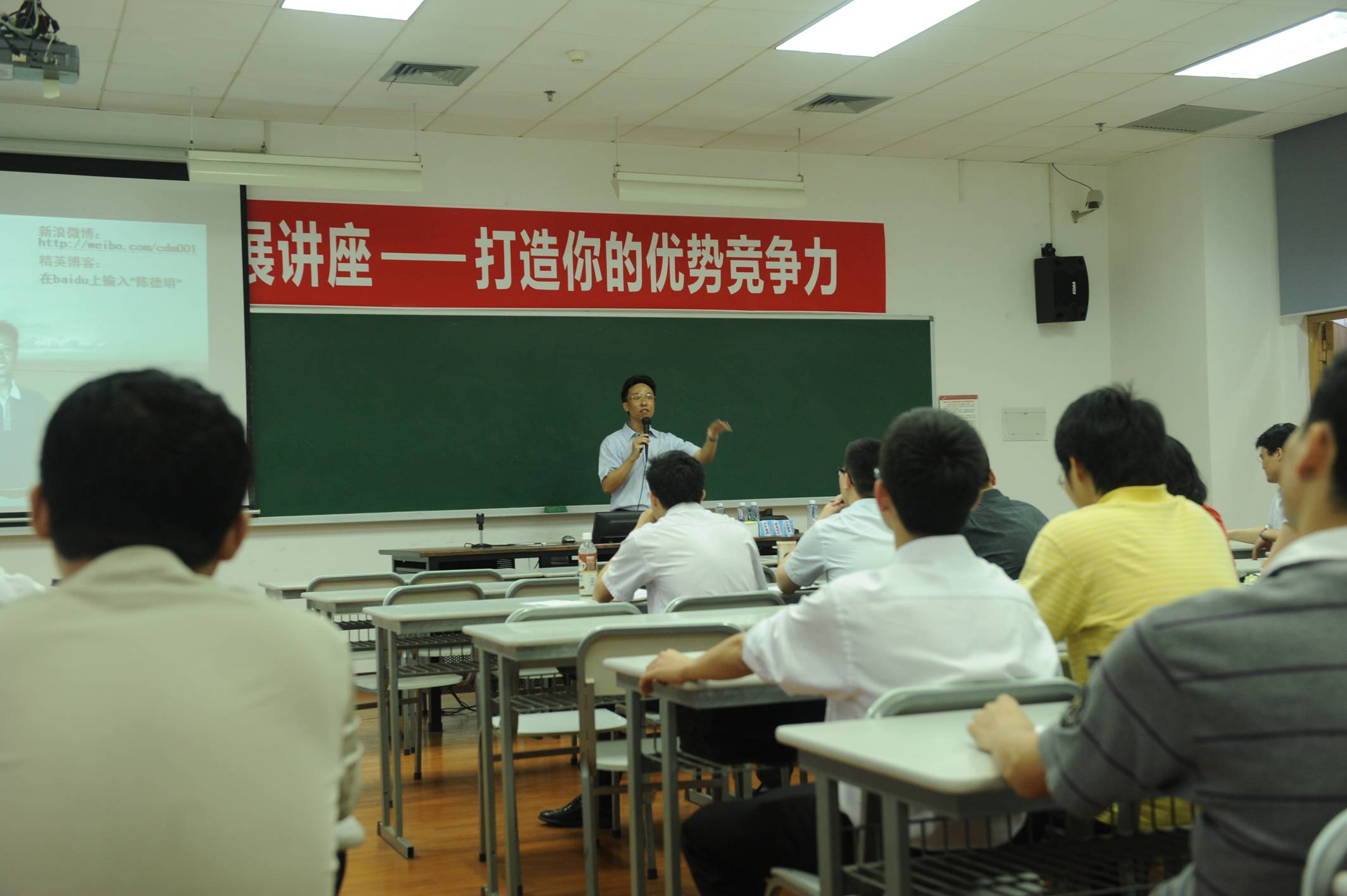 4月14日晚,MBA教育中心“学员职业发展”系列讲座之“打造优势竞争力”专题讲座在文科楼H5-304举行。应MBA教育中心的邀请,高级职业指导师、职业指导高级考评师陈德明教授担任了本次演讲的嘉宾,为学员们带来了一场精彩的职业导航讲座。