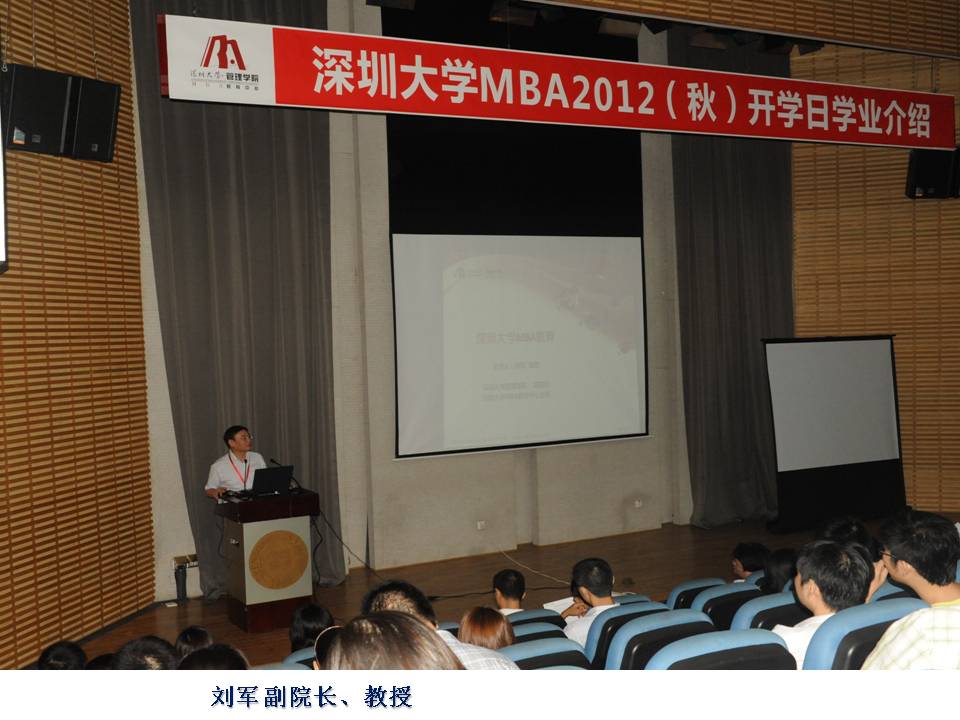 2012年9月2日,这是一个值得纪念的日子。经过了长期的考试准备和严格的初试和复试,MBA新生们终于等来了这一天,圆梦的一天。上午8点整,深圳大学MBA2012秋季班开学日系列活动在深圳大学科技楼2号报告厅拉开了序幕。虽然时间很早,但MBA新生们脸上都洋溢着欢乐,短短1小时内,140多人的注册和报到手续有序地完成了。九点整,“学业介绍环节”准时开始。主持人深圳大学MBA教育中心战略发展与招生部主任陈林老师代表深圳大学、深圳大学MBA教育中心热烈欢迎新学员之后,介绍了今日的议程。