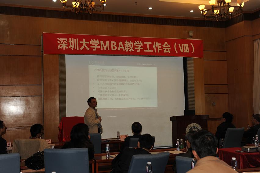 2011年12月17日下午,深圳大学MBA第八次教学工作会议在国际会议厅D厅成功举办。深圳大学副校长阮双琛教授、研究生院(筹)院长王晖教授、杜龙书记,管理学院领导及MBA任课教师出席会议。