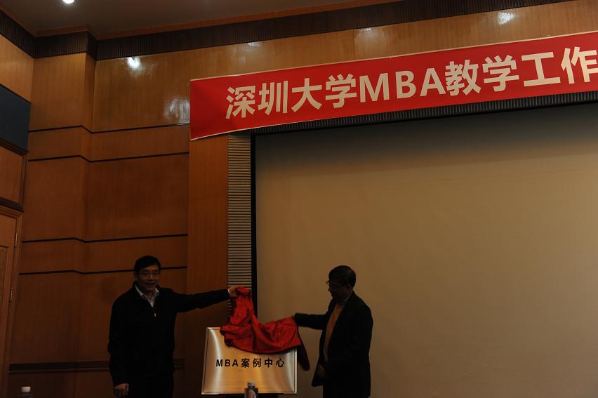 为推动MBA案例教学,案例研究中心正式启动运作,在大家的一片掌声中,副校长阮双琛教授与管理学院院长陈智民教授为MBA案例中心揭牌。阮双琛副校长在讲话中充分肯定了MBA的办学质量和工作努力,并表示学校会进一步支持MBA发展。