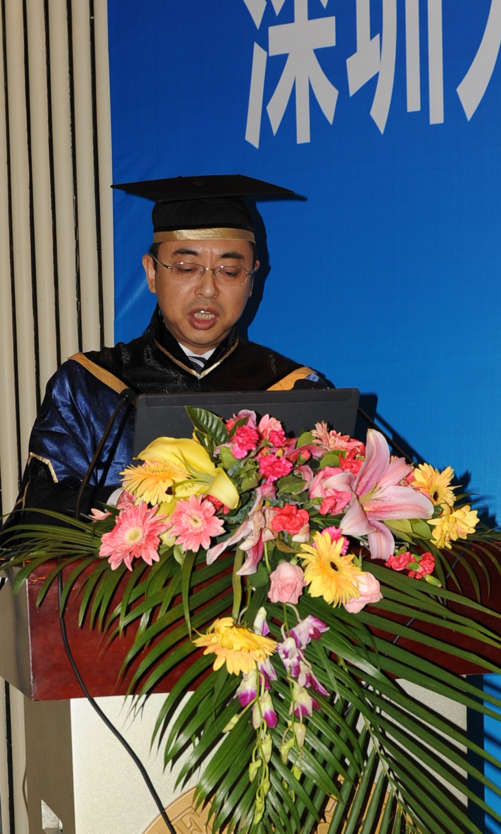 同学们,临别之际,让我们立下誓言:今天,我们以作为深圳大学管理学院的毕业生为荣;明天,深圳大学管理学院将会以我们为荣!