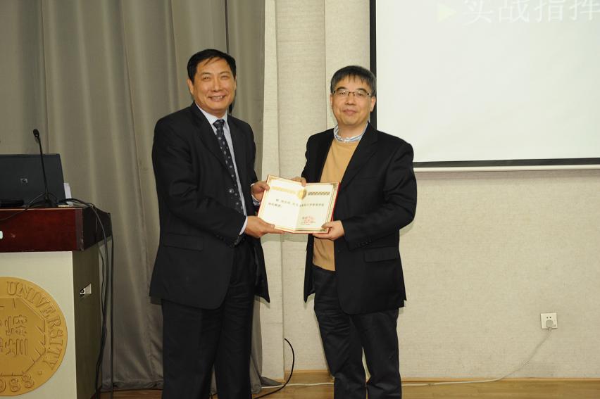 12月25日,科技楼2号报告厅,深圳高速股份有限公司周庆明副总裁受聘成为深圳大学管理学院特约教授。管理学院院长陈智民教授出席仪式并颁发了证书。