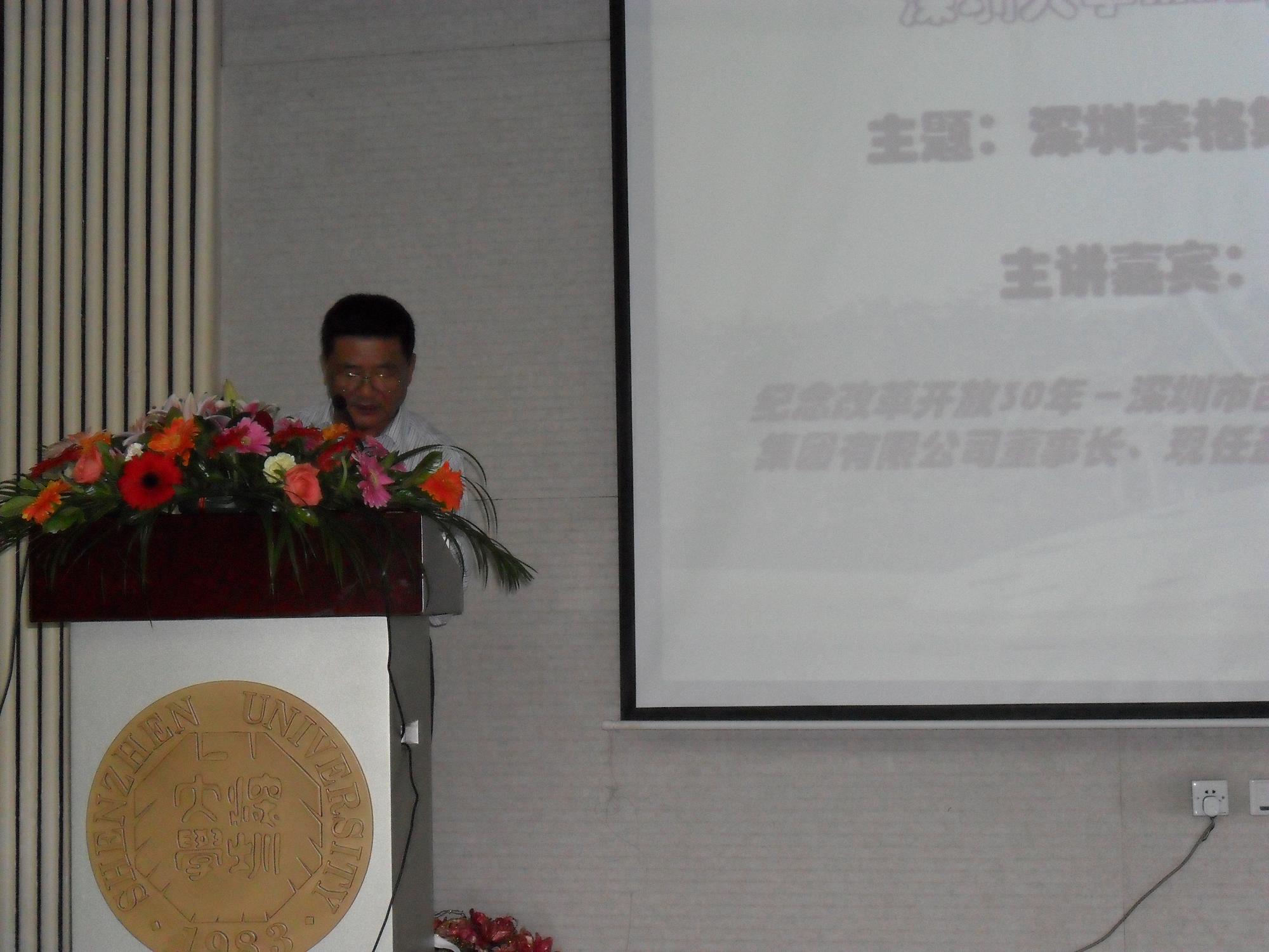 授牌仪式之后,深圳大学MBA大讲堂第17讲开讲。演讲嘉宾深圳盐田港集团监事会主席、庆祝改革开放30周年,深圳市百名杰出企业家之一、赛格集团有限公司前董事长郭永刚先生以“赛格集团如何走出困境”为题,作了精彩演讲。