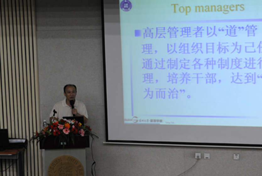 招生说明会结束后,深大管理学院党委书记宋涛副教授讲授了主题为“管理科学与管理艺术”的公开课程。宋涛老师采用了国内外企业经典案例对管理的科学性与艺术性进行讲解,内容紧贴企业经营管理现实,表达生动活泼,现场反应热烈。