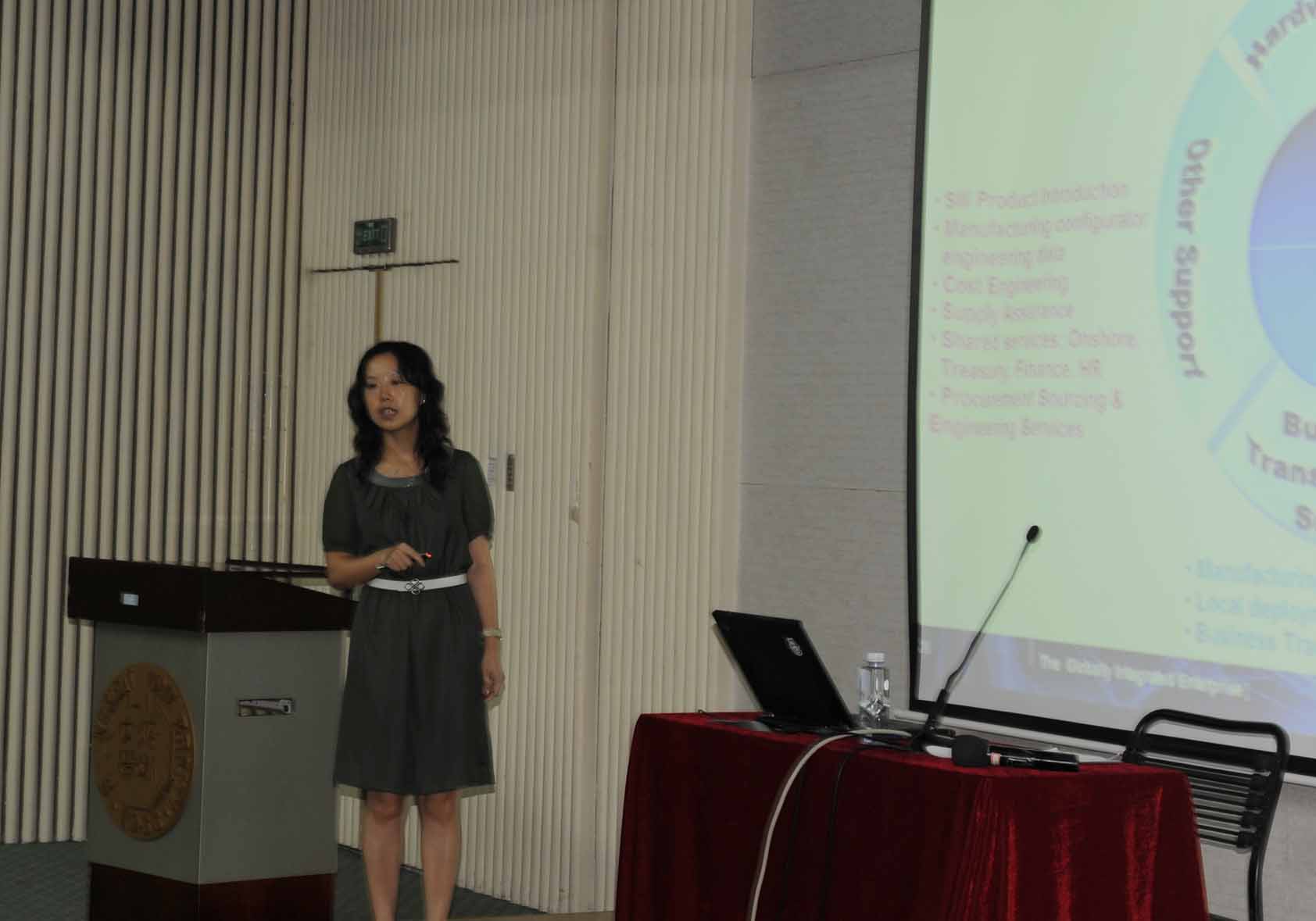 作为长期执掌IT行业牛耳的业界翘楚,IBM在百年一遇的国际金融危机的大背景下又交出了一份靓丽的年报,"What makes IBM different?",曾女士从学员们对IBM的初步认知开始,介绍IBM的近年的规划和IBM全球集成供应链(ISC) 的概况,并结合自身在IBM集成供应链长期的工作经历对IBM集成供应链的职业发展规划(PDP)进行了详细的阐述;主体演讲结束后曾女士还与MBA学员就IBM供应链情况、个人职业发展规划作了精彩和坦诚的互动.