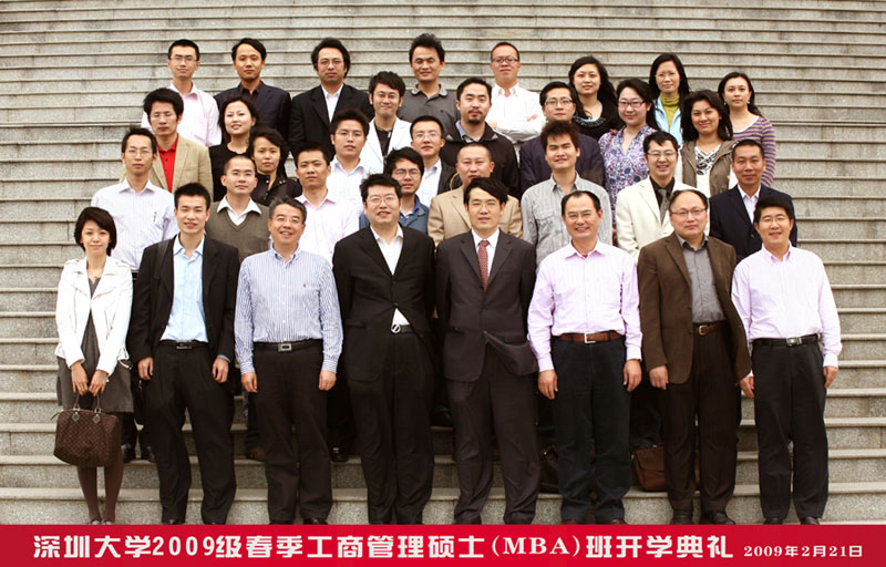 2月21日上午,深圳大学2009级春季MBA班开学典礼暨MBA大讲堂(Ⅵ)在深圳大学科技楼三号报告厅举行。30名MBA新学员参加,深圳大学副校长阮双琛教授、管理学院院长陈智民教授、深圳大学MBA教育主任、管理学院副院长刘军教授、深圳大学MBA教育指导委员会委员、工商管理系系主任冯建民教授、MBA任课教师代表和MBA教育中心管理人员等老师出席,刘军教授主持典礼。