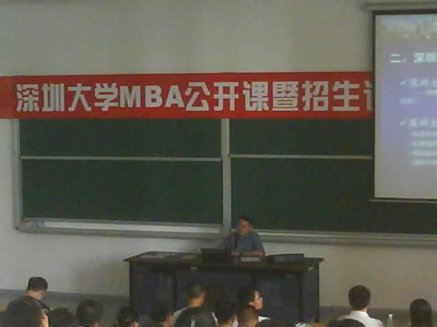 07年7月8日下午,深圳大学MBA教育中心在深圳大学文科楼举行了深大MBA公开课暨招生说明会。一百多名来自社会各界、有志报读MBA的人士参加了此次活动。据悉,来宾主要是深圳市内各大企业的中高层管理人员和自主创业人士,也有少部分来自周边城市。