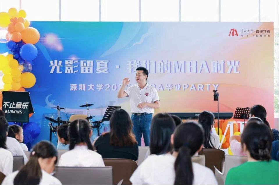 派对伊始,深圳大学管理学院党委书记何军上台致辞。他深情回顾了同学们在MBA学习生涯中的点点滴滴,对大家顺利完成学业表示热烈祝贺,同时寄语同学们在未来的人生道路上能够秉持在MBA课程中所学的知识与精神,不断开拓进取,创造更加辉煌的业绩。
