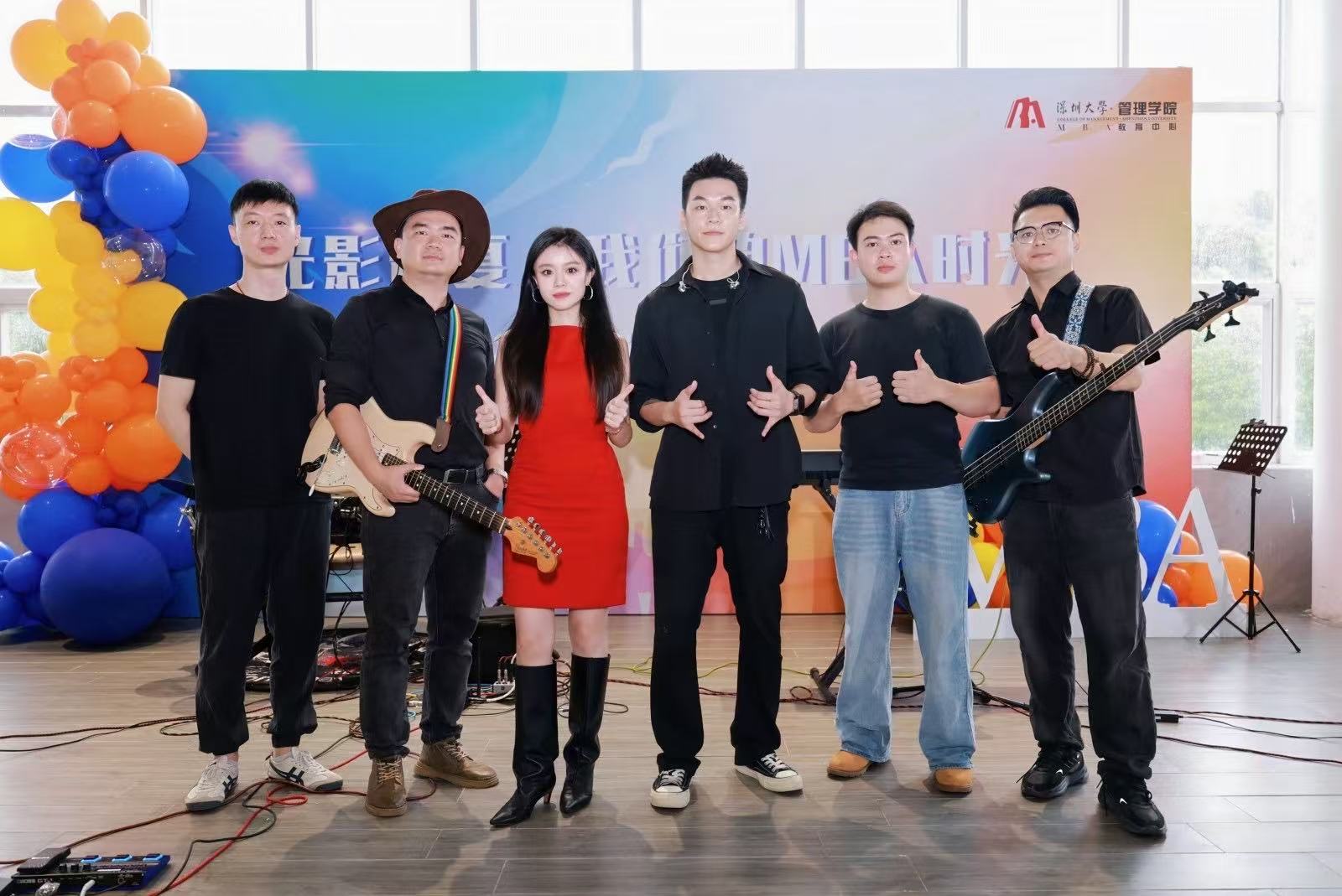 表演环节无疑是派对的精彩亮点。乐队率先登场,以旋律悠扬的《Love Story》开启毕业Party,让大家沉浸在浪漫的氛围中,紧接着一首动感十足《天后》的点燃现场的气氛。随后,MBA教育中心老师赵心深情演唱的《阳光总在风雨后》,用温暖而坚定的歌声传递出积极向上的力量,鼓励着每一位毕业生勇敢面对未来的挑战。廖晨希小朋友(毕业生韩翠容)带来的《相思遥》,纯净的童声温暖治愈,仿佛将大家带入了一个美好的童话世界。此外,悠扬动人的键盘独奏《雨下一整晚》,也为现场增添了一份宁静与诗意。