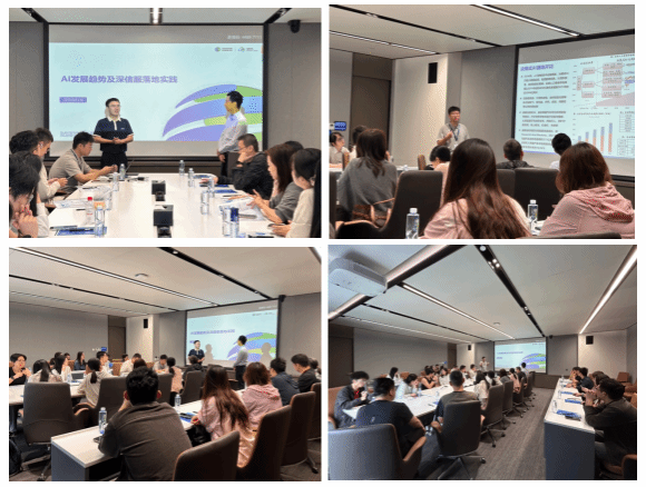 展厅参观结束后,活动进入核心环节——深信服公司及业务深度介绍交流会。交流会伊始,深信服邓总对深圳大学MBA师生的到访表示热烈欢迎,并简要介绍了企业的使命愿景与文化理念。随后,由深信服技术专家魏经理以《AI发展趋势及深信服落地实践》为主题,为同学们带来了一场内容生动、信息量丰富的专题分享。报告从全球AI发展趋势与行业应用现状谈起,深入剖析了深信服在AI应用场景选择中的逻辑思考,并现场演示了企业自主研发的智能办公应用,如智能差旅、智能请假、案例助手与标讯助手等实际功能,展示了AI赋能企业管理与决策的真实场景。魏经理还以广东省数字政府网络安全攻防演练等案例为例,阐释了AI技术在安全大模型与智能防御体系中的落地实践,凸显了人工智能在助力企业构建主动防御、智能响应与持续优化能力方面的核心价值。