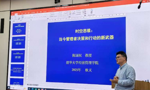 谈及现代管理,陈教授以华为“南泥湾计划”、刘强东价值坚守等为例,指出优秀管理者需把握时空节点、平衡时空追求,既要秉持“不求500强,但求500年”的长期主义,又要聚焦核心的空间思维。