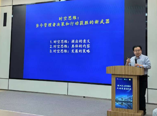 2025年11月2日,深圳大学管理学院MBA大讲堂活动在丽湖校区举行,清华大学经济管理学院陈国权教授受邀以“时空思维:管理者决策和行动的新武器”为题,为MBA学子带来一场干货满满的学术讲座,助力学子拓宽管理视野。