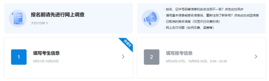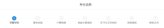 3.考生可先进行网上调查(也可不填),点击“1 填写考生信息”后依序进行信息填报,具体截图见下。