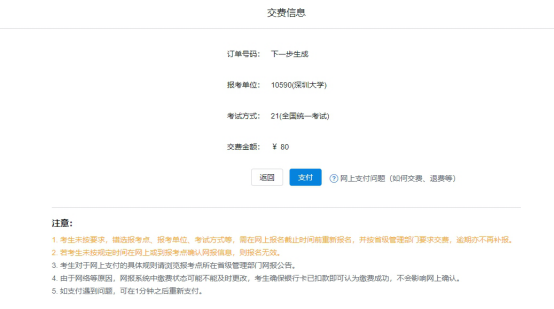 11.考生网上支付考试费用,缴费成功后方可完成网报环节。