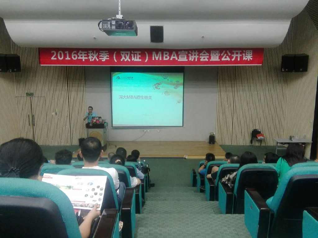 2016秋(双证)MBA宣讲会暨公开课于2015年10月7日下午在深圳大学科技楼3号报告厅顺利举行。