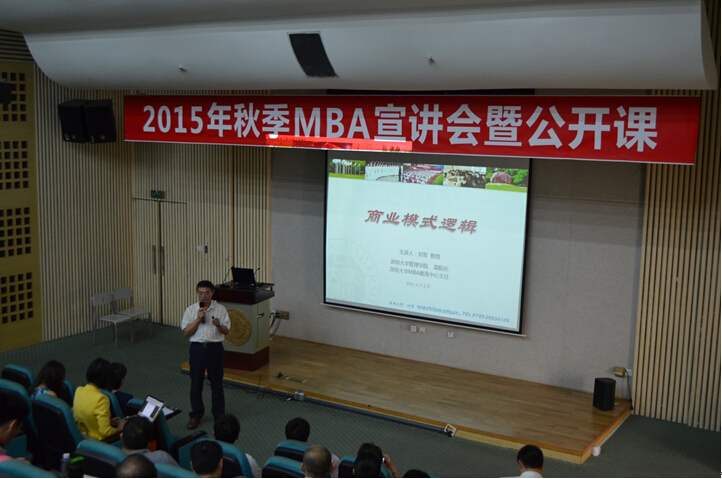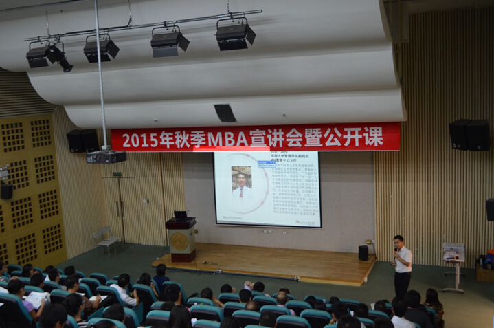 014年9月27日星期六上午在深圳大学科技路3号报告厅举行了2015年秋季MBA宣讲会暨公开课,本次活动吸引了80多位有意向报读深大MBA的考生参加。