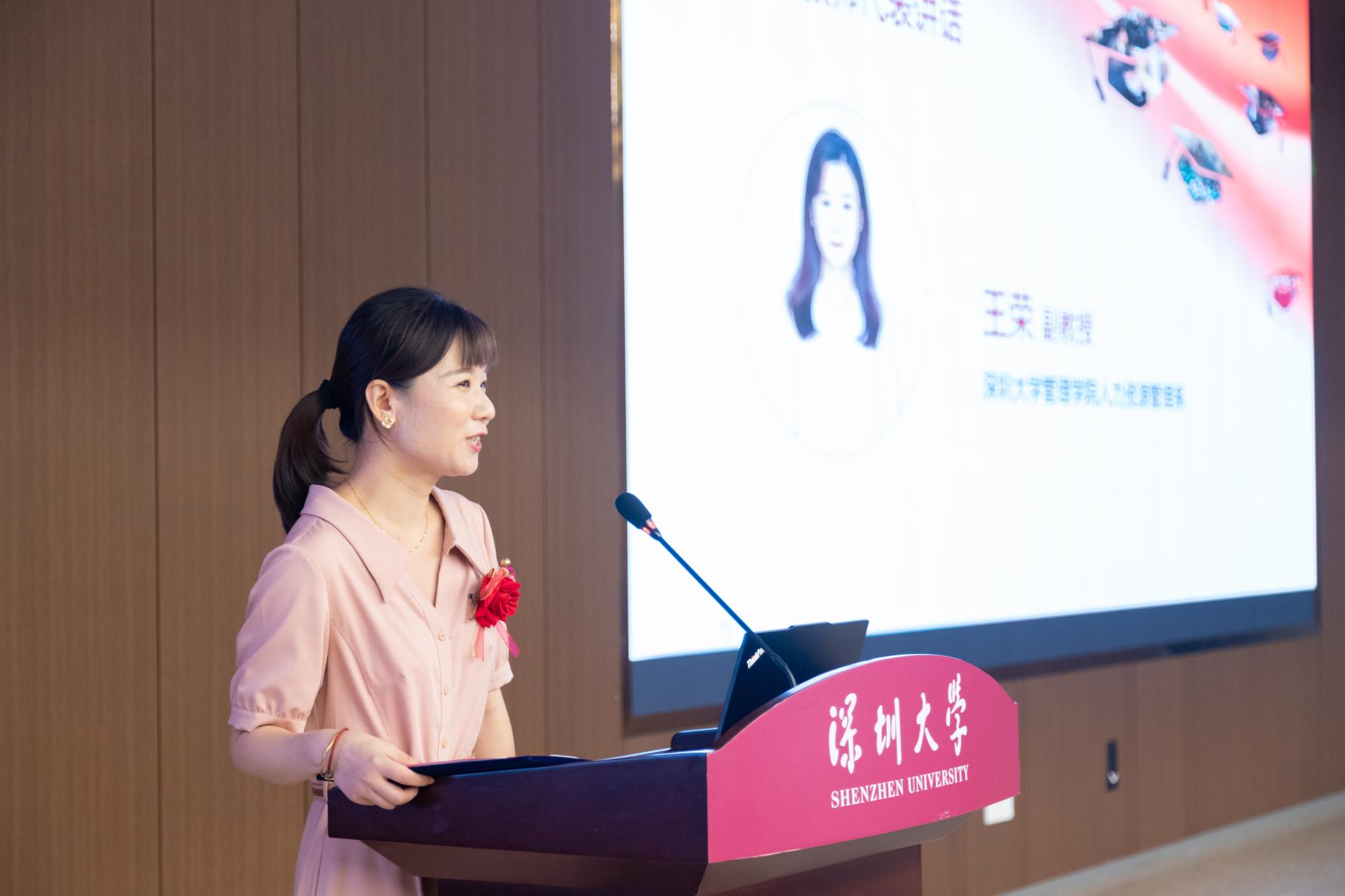 王荣副教授作为教师代表讲话,她和所有MBA新生分享三个“锦囊”,助力新生在MBA之旅中愉快、充实地“通关”。她祝福新生们在未来的学习中可以汲取丰富知识、结交亲密友谊、书写精彩篇章。