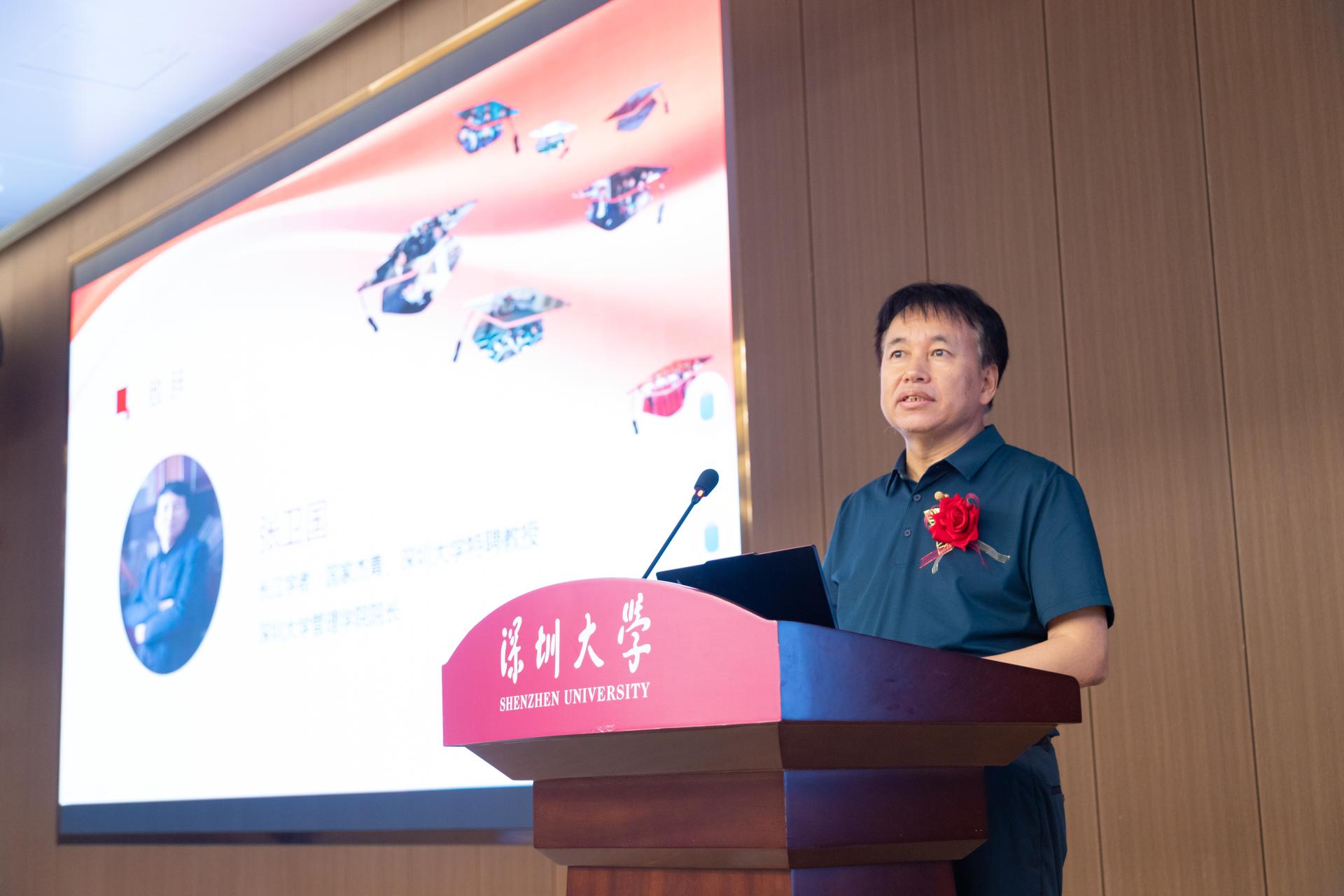 国家杰出青年、深圳大学特聘教授、管理学院院长张卫国首先致辞。他对23级MBA新生表示衷心的祝贺和热烈的欢迎,并简要介绍了深圳大学和管理学院的基本情况。近年来学校软科世界大学排名进入前200名,17个学科进入ESI学科世界排名前1%,成为内地进步最快大学之一。管理学院是深圳首家通过AACSB(国际精英商学院协会)认证的本土商学院。今年9月8日第十四届“全国百篇优秀管理案例”评选中深圳大学MBA教育中心共有4篇获评“全国百篇优秀管理案例”,在全国高校排名靠前。面对激烈的竞争和残酷的挑战,MBA新生可以回到学校更新知识,激荡思维,启迪智慧,提升能力,积蓄能量,塑造更好的自己。张院长也对所有新生提出了希望和期待,他希望新生能够不忘初心,砥砺前行,在深大学有所成,未来前程似锦。