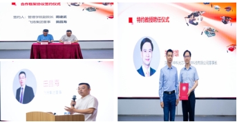 开学典礼中举行了管理学院合作框架协议签约仪式和特约教授聘任仪式。蒋建武副院长代表学院与飞扬集团签署了合作框架协议。飞扬集团田昌海董事致辞,未来校企双方将在将在学术科研、案例开发、人才培养、成果转化等领域深化合作,为MBA学生学习提供更多的实践机会和更广阔的发展空间。深圳大学MBA教育中心主任崔世娟宣读聘任文件、管理学院党委书记何军颁发聘书,聘任深圳市中科光芯半导体科技有限公司董事长郑君雄博士为管理学院特约教授,助力学科交叉与产业融合。