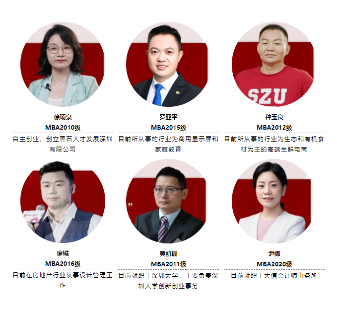 时值深大MBA办学十五周年之际,让我们共同走进6位从深大MBA出发,在各行各业大放异彩的优秀校友,聆听他们关于创业、职业选择、行业发展与人生进阶的“真知灼见”。