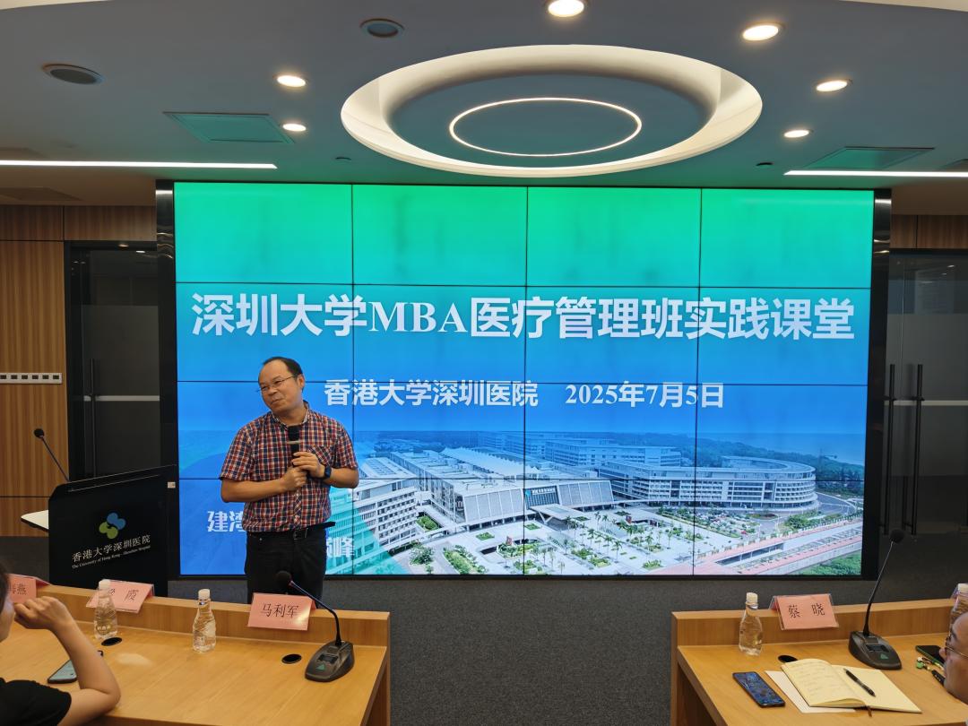 2025年7月5日14时30分,在深圳大学管理学院马利军教授带领下,深圳大学 MBA 医疗管理班学员走进香港大学深圳医院,开展 “公立医院运营管理” 主题实践课堂。
