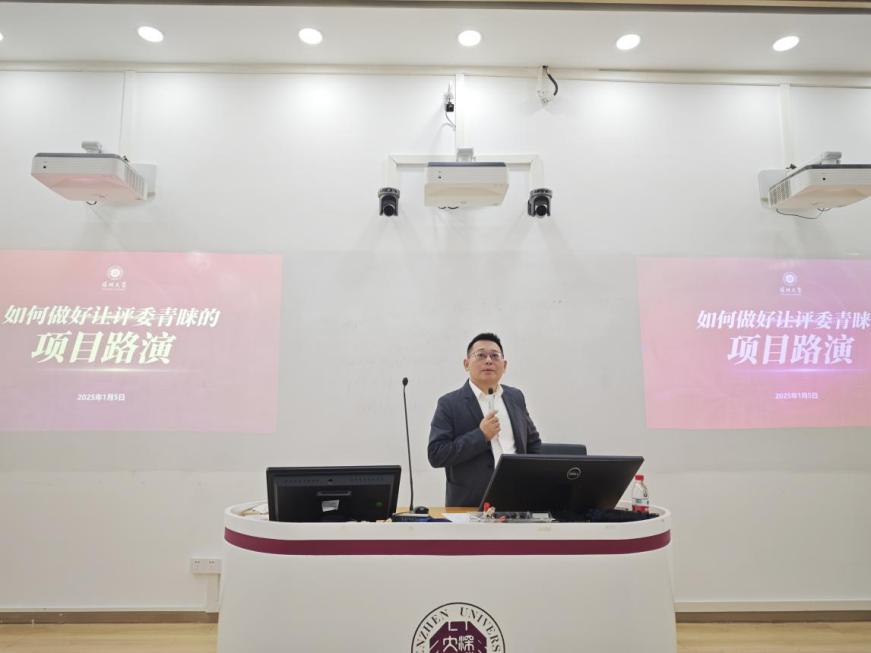 2025年1月5日周日下午,管理学院MBA课程《国际商务决策模拟》来到课程实践的“股东汇报会”环节,主讲教师黄凯珊邀请了深圳大学创新创业导师郑颜宗来到课堂担任评委。