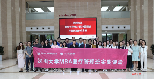 2024年7月14日,深圳大学MBA医疗管理班一行在崔世娟教授和沈楠老师带领下,参访了深圳迈瑞研发总部,深入了解了这家医疗科技领军企业的产业布局与创新实践。此次参观不仅是一次对科技医疗前沿的探索,更是一场关于智慧与未来的深度对话。